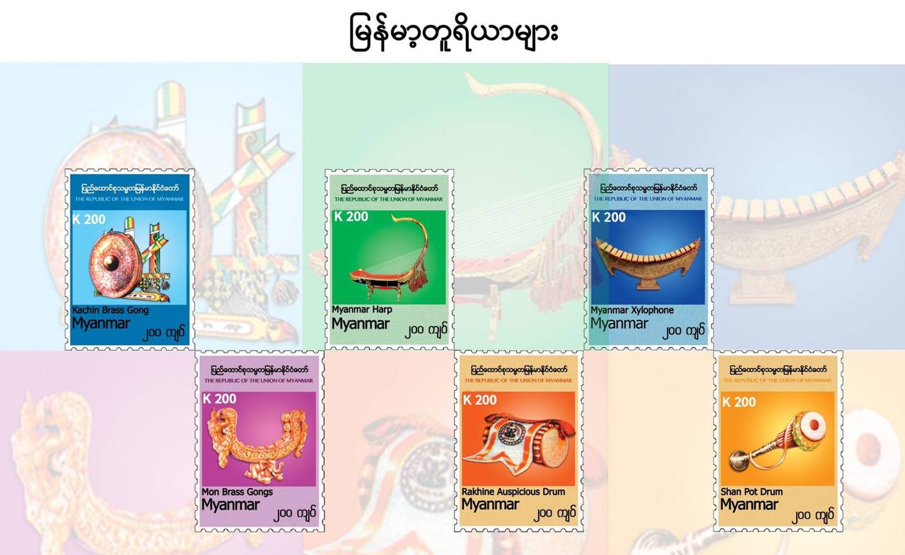 ပို့ဆောင်ရေးနှင့်ဆက်သွယ်ရေးဝန်ကြီးဌာန၊ မြန်မာ့စာတိုက်လုပ်ငန်းမှ မြန်မာ့တူရိယာ တစ်မျိုးချင်းအလိုက် ထုတ်ဝေခဲ့ပြီးသော တံဆိပ်ခေါင်းများကို တံဆိပ်ခေါင်းစုဆောင်းသူ ဝါသနာရှင်များအနေနဲ့ တစုတစည်းတည်း စုဆောင်းန...