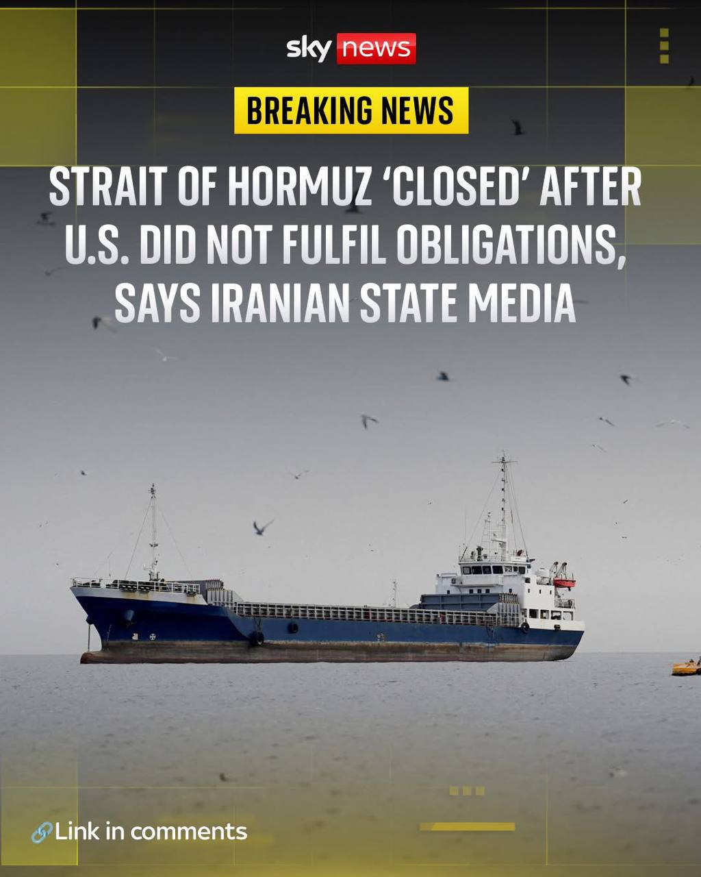 အီရန်က ဧပြီလ ၁၈ ရက်တွင် ဟော်မုရေလက်ကြားမှနေ၍ သင်္ဘောများ ဖြတ်သန်းခွင့်ကို တစ်ဖန် ပြန်လည်ကန့်သတ်လိုက်ပြီး အမေရိကန်၏ ပိတ်ဆို့မှုလုပ်ရပ်သည် ပင်လယ်ဓားပြဆန်ကြောင်း စွပ်စွဲ ပြောဆိုလိုက်သည်ဟုသိရသည်။ အစ္စရေး...