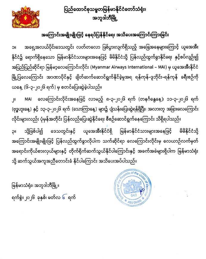 ယူအေအီးနိုင်ငံရှိ မြန်မာနိုင်ငံသားများအနေနဲ့ မိမိန...