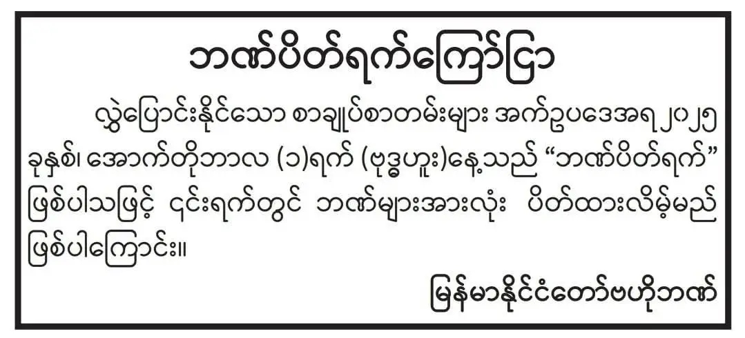 Read More၂၀၂၅ ခုနှစ်၊ အောက်တိုဘာလ ၁ ရက်(ဗုဒ္ဓဟူးနေ့)တွင် ဘဏ...