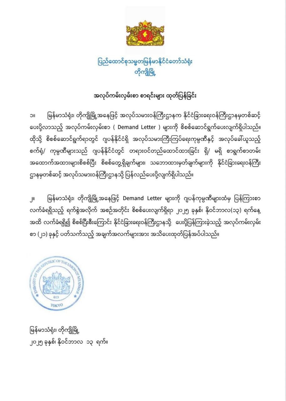 14 Novဂျပန်နိုင်ငံရှိ စက်ရုံအလုပ်ရုံများတွင် လုပ်ကိုင်ရန...