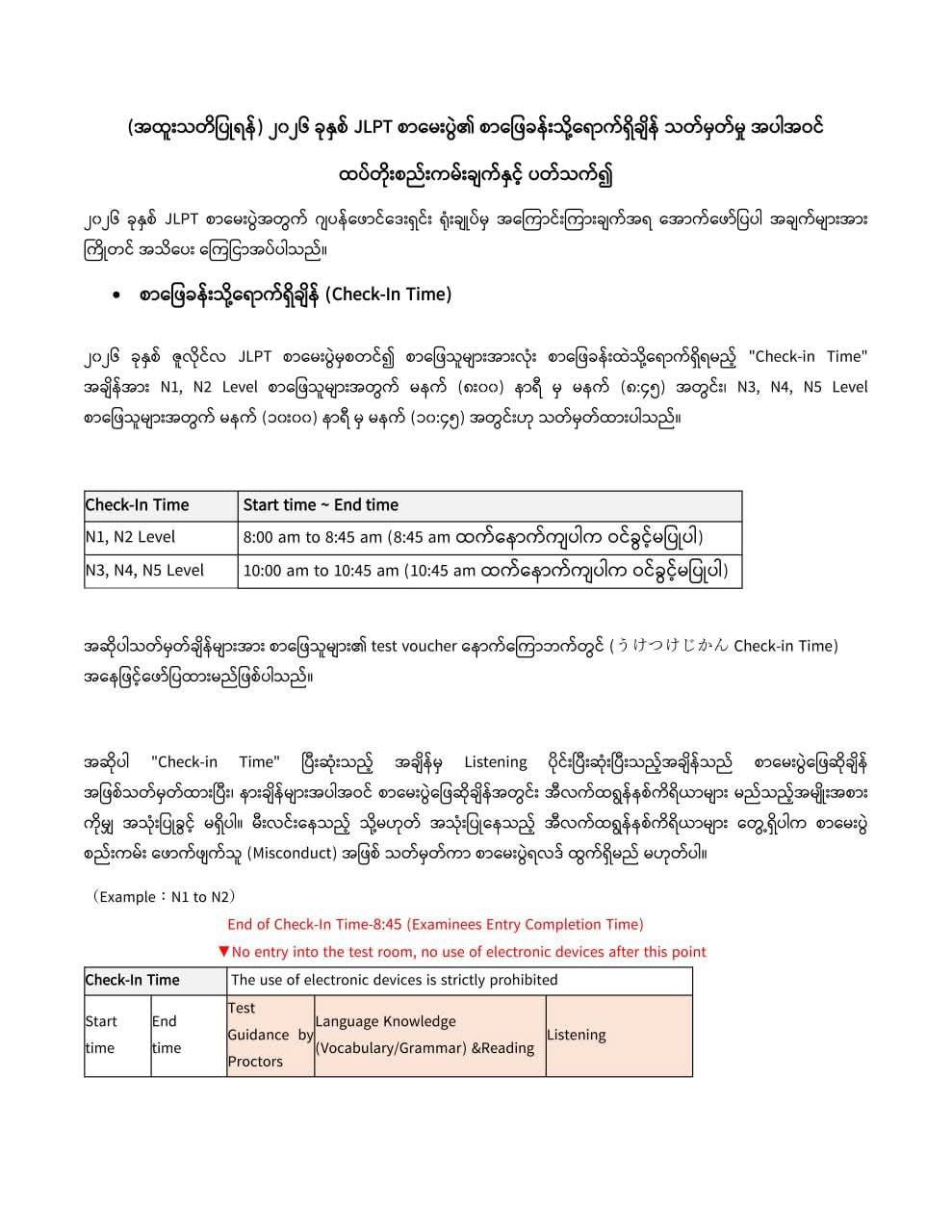 ၂၀၂၆ ခုနှစ် JLPT စာမေးပွဲ၏ စာဖြေခန်းသို့ရောက်ရှိချ...