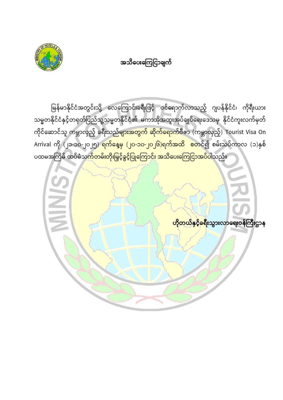 မြန်မာနိုင်ငံအတွင်းသို့ လေကြောင်းခရီးဖြင့် ဝင်လာရ...