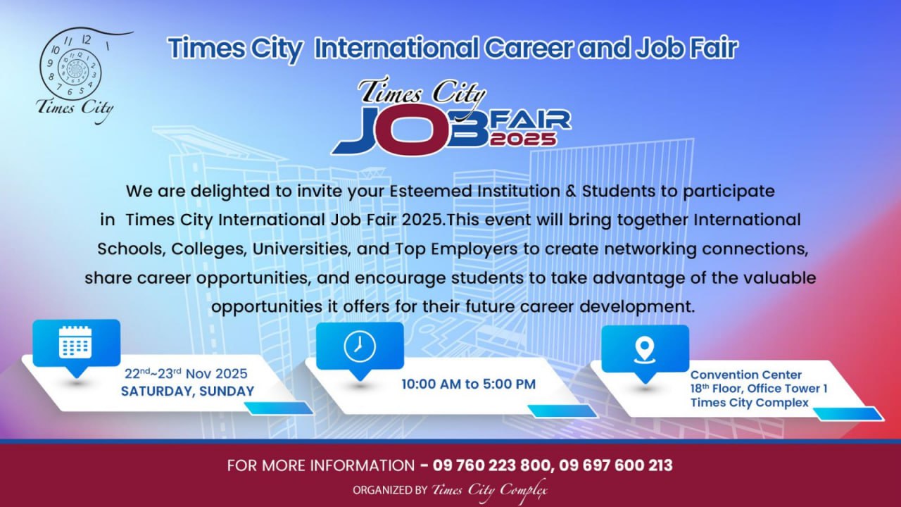 အလုပ်အကိုင်ပေါင်း ၆၀၀ ကျော် ခေါ်ယူမည့် Times City...
