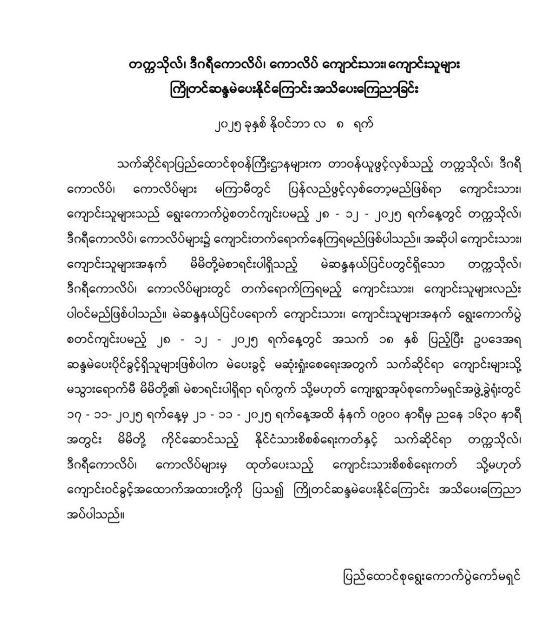 မကြာမီဖွင့်လှစ်မည်ဖြစ်သည့် တက္ကသိုလ်၊ ဒီဂရီကောလိပ်...