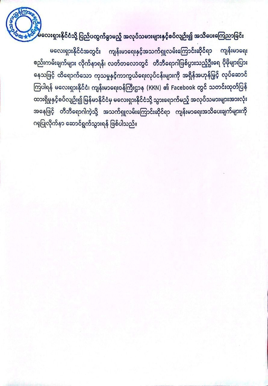 မြန်မာနိုင်ငံမှ မလေးရှားနိုင်ငံသွားရောက်မည့် အလုပ်...
