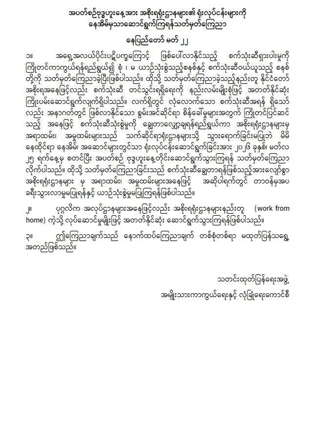 အစိုးရရုံးဌာနများ၏ ရုံးလုပ်ငန်းများအနေနဲ့ အပတ်စဉ်ဗ...