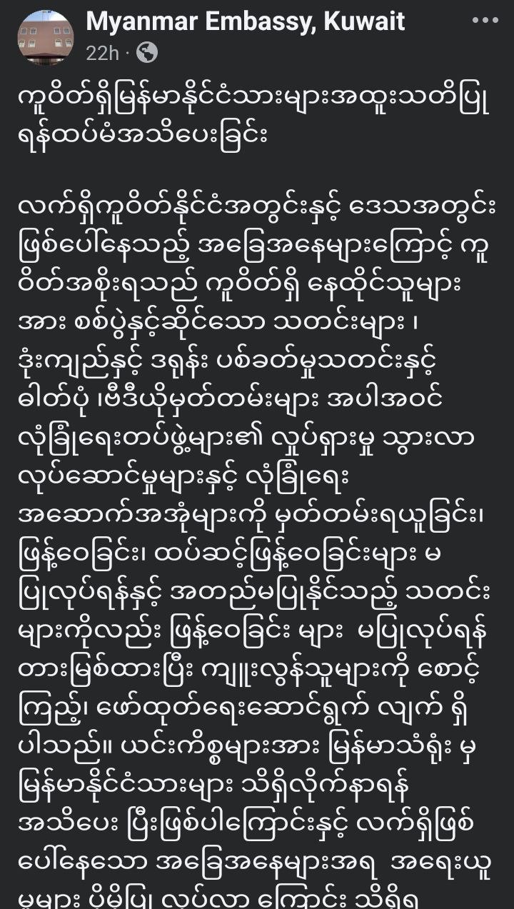 လက်ရှိ ကူဝိတ်နိုင်ငံအတွင်းနှင့်ဒေသအတွင်း ဖြစ်ပေါ်န...