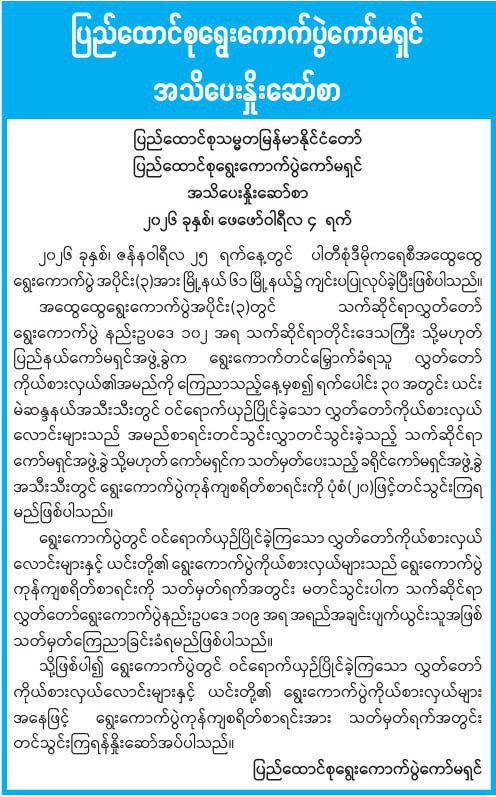 ပြီးခဲ့တဲ့ ပါတီစုံဒီမိုကရေစီအထွေထွေရွေးကောက်ပွဲကို...