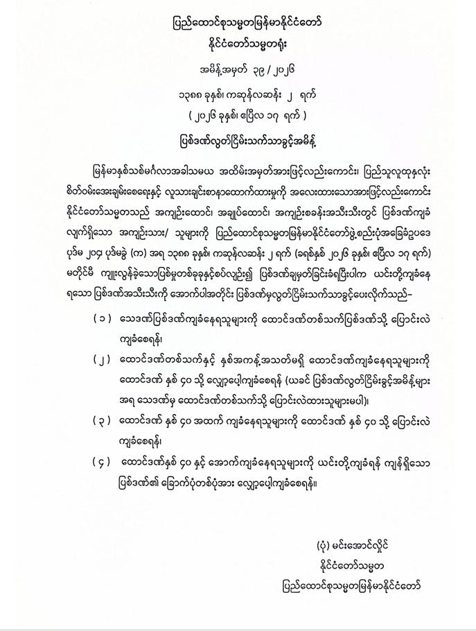 နိုင်ငံတော်သမ္မတ ဦးမင်းအောင်လှိုင် က အစိုးရအဖွဲ့အန...