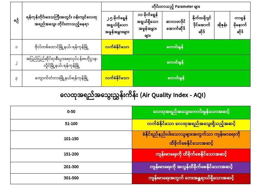 မတ်လ ၁၀ ရက်မှာ ရန်ကုန်မြို့ရဲ့ ဝန်းကျင်လေထုအရည်အသွ...