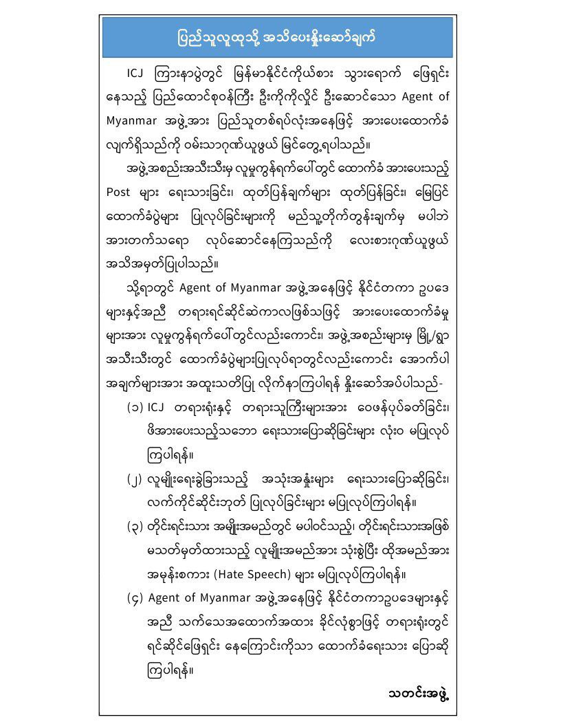 ICJ မှာ မြန်မာနိုင်ငံကိုယ်စားပြုဖြေရှင်းနေတဲ့ မြန်...
