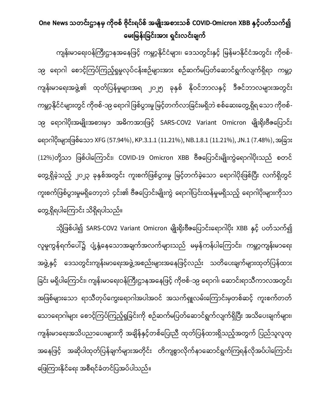 SARS-COV2 Variant Omicron မျိုးရိုးဗီဇပြောင်းရောဂါ...
