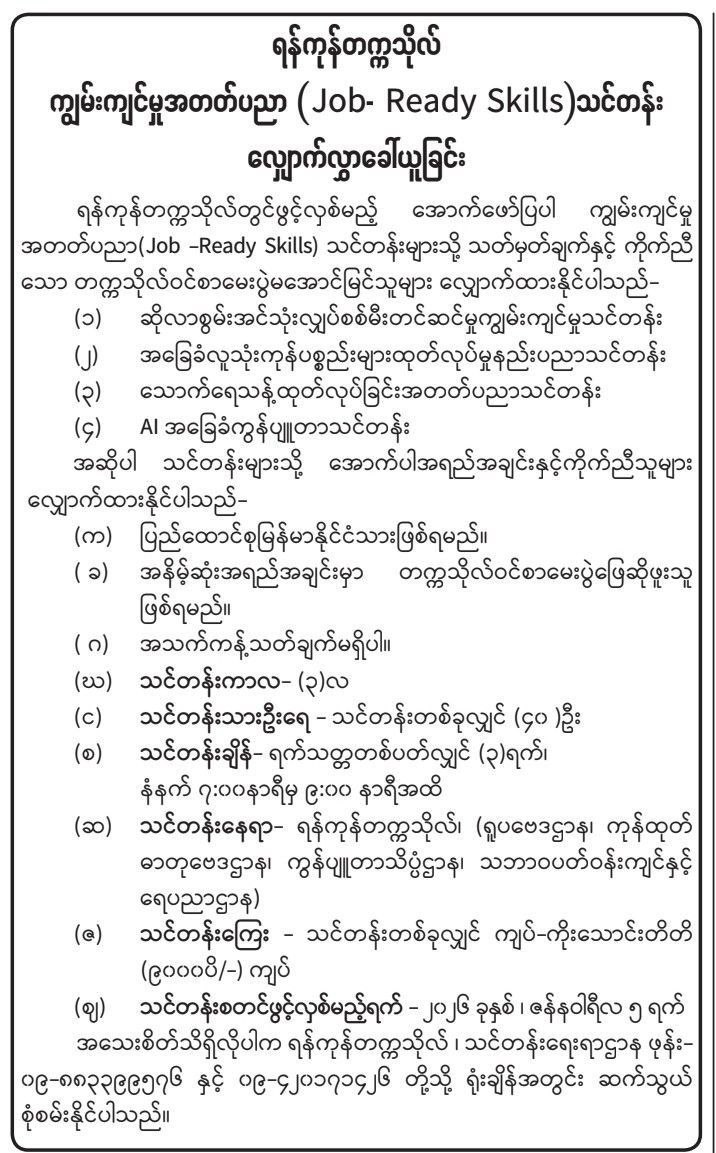 တက္ကသိုလ်ဝင်စာမေးပွဲ အောင်မြင်မှုမရှိခဲ့သူများအတွက...