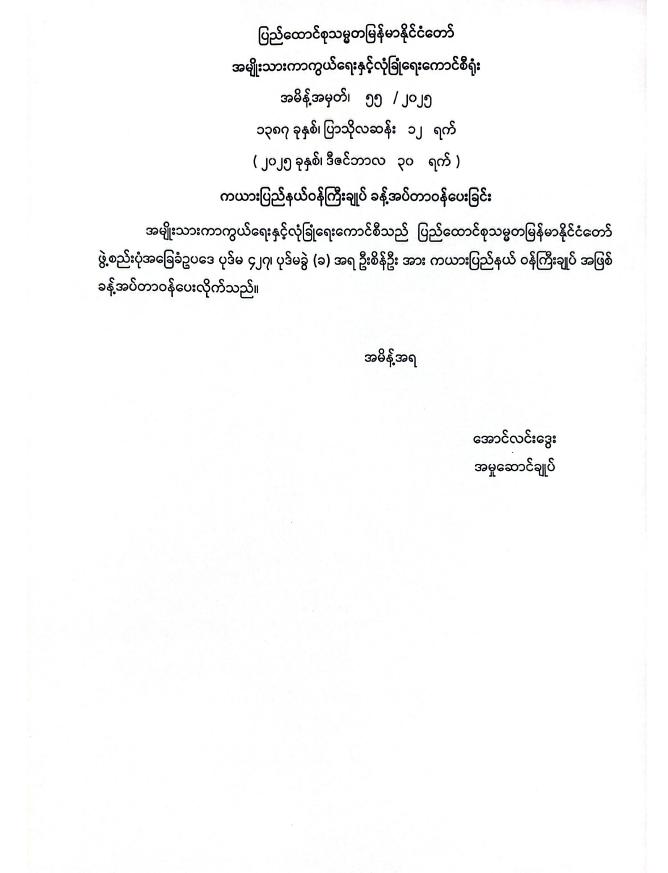 အမျိုးသားကာကွယ်ရေးနှင့်လုံခြုံရေးကောင်စီရုံးမှ အမိ...
